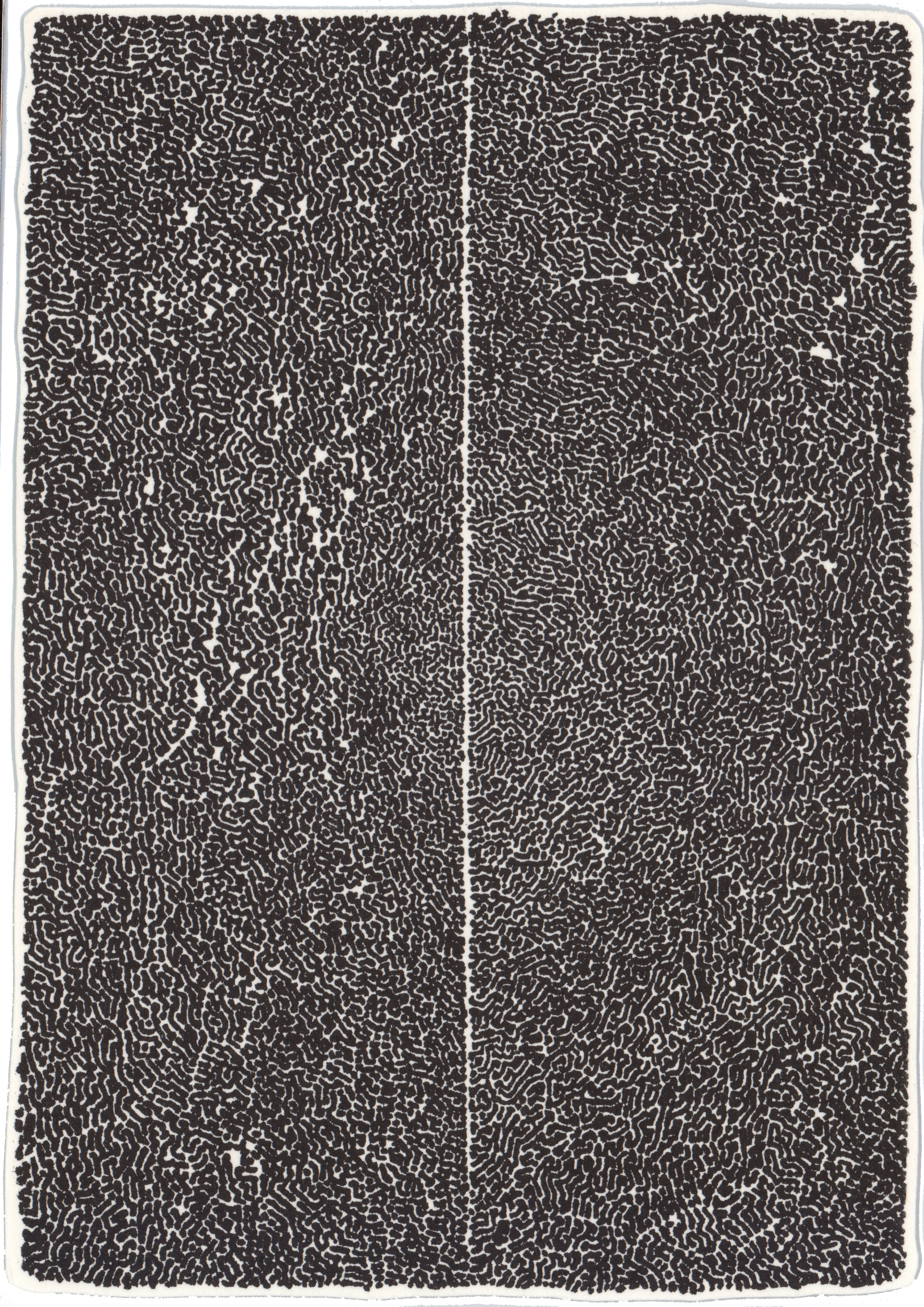 Black and white image containing two vertically oriented rectangels separated by a fine white line. The patterns are composed of very fine black marks that are densely placked together. verso: ULC:"301" LL:"Conner 51/90" LRC:"Conner 51/90"
