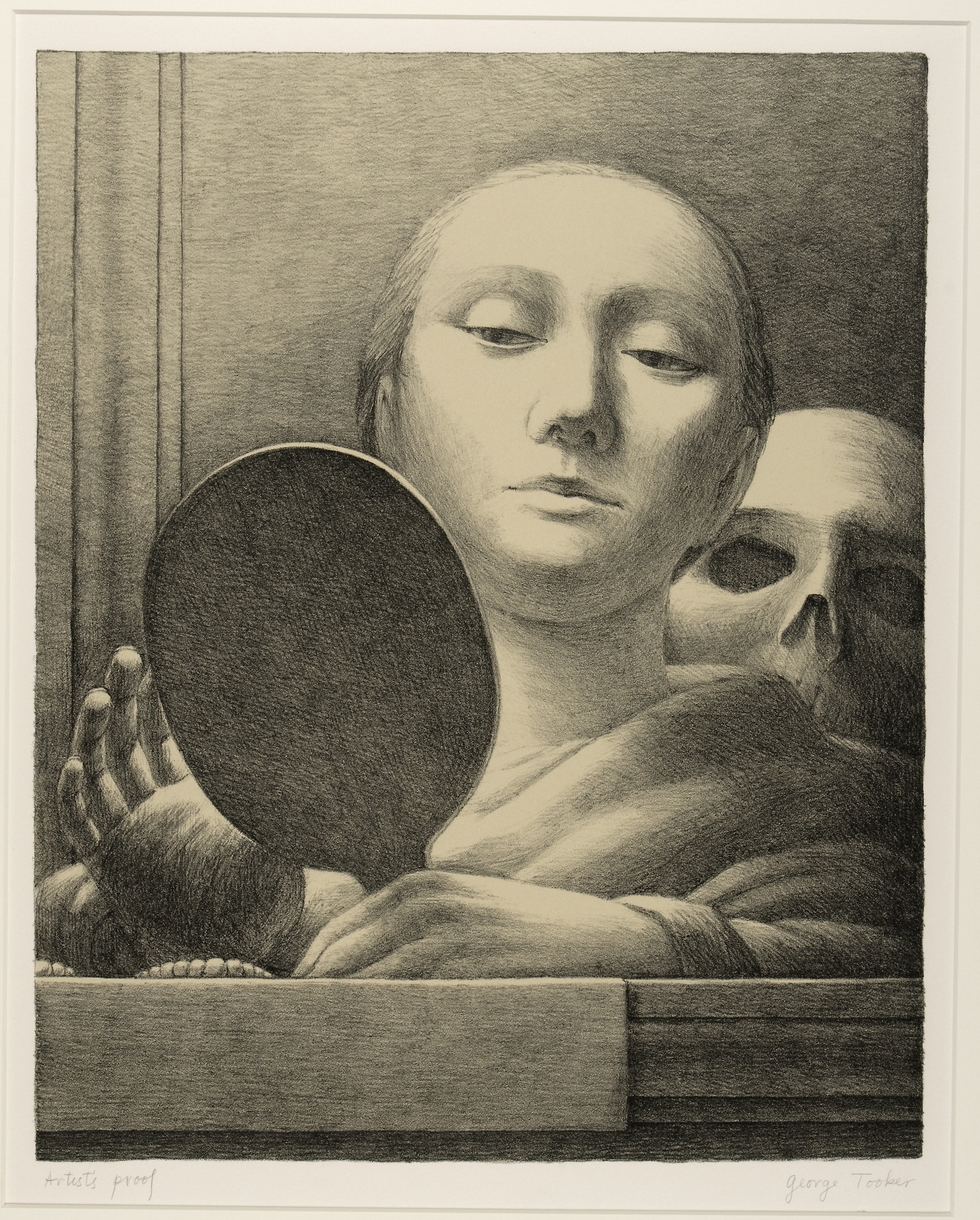 Image of a woman looking into a hand-mirror with a skull in the background Edition: Artist's Proof