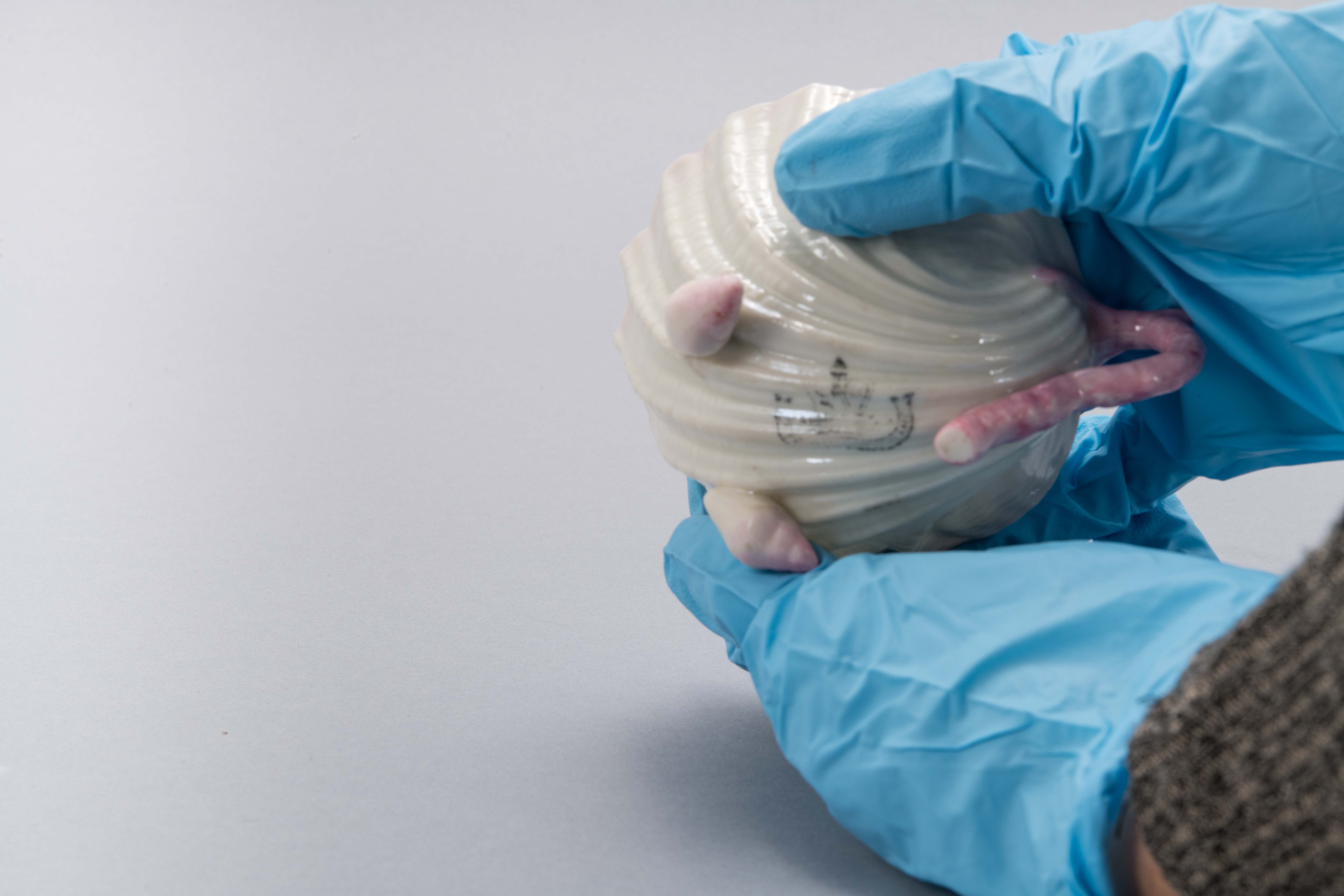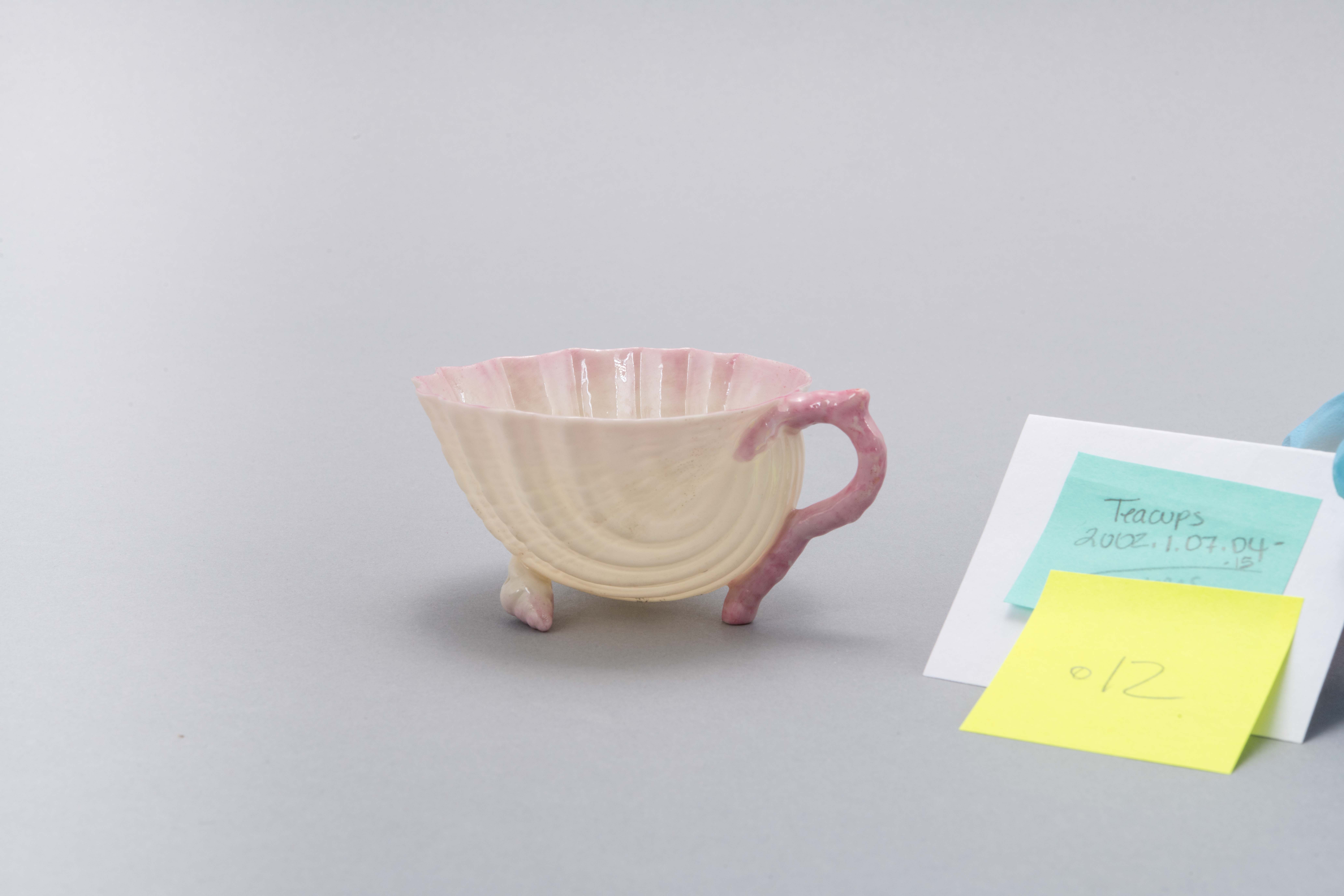 (9 of 12 teacups) Porcelain with pink glaze