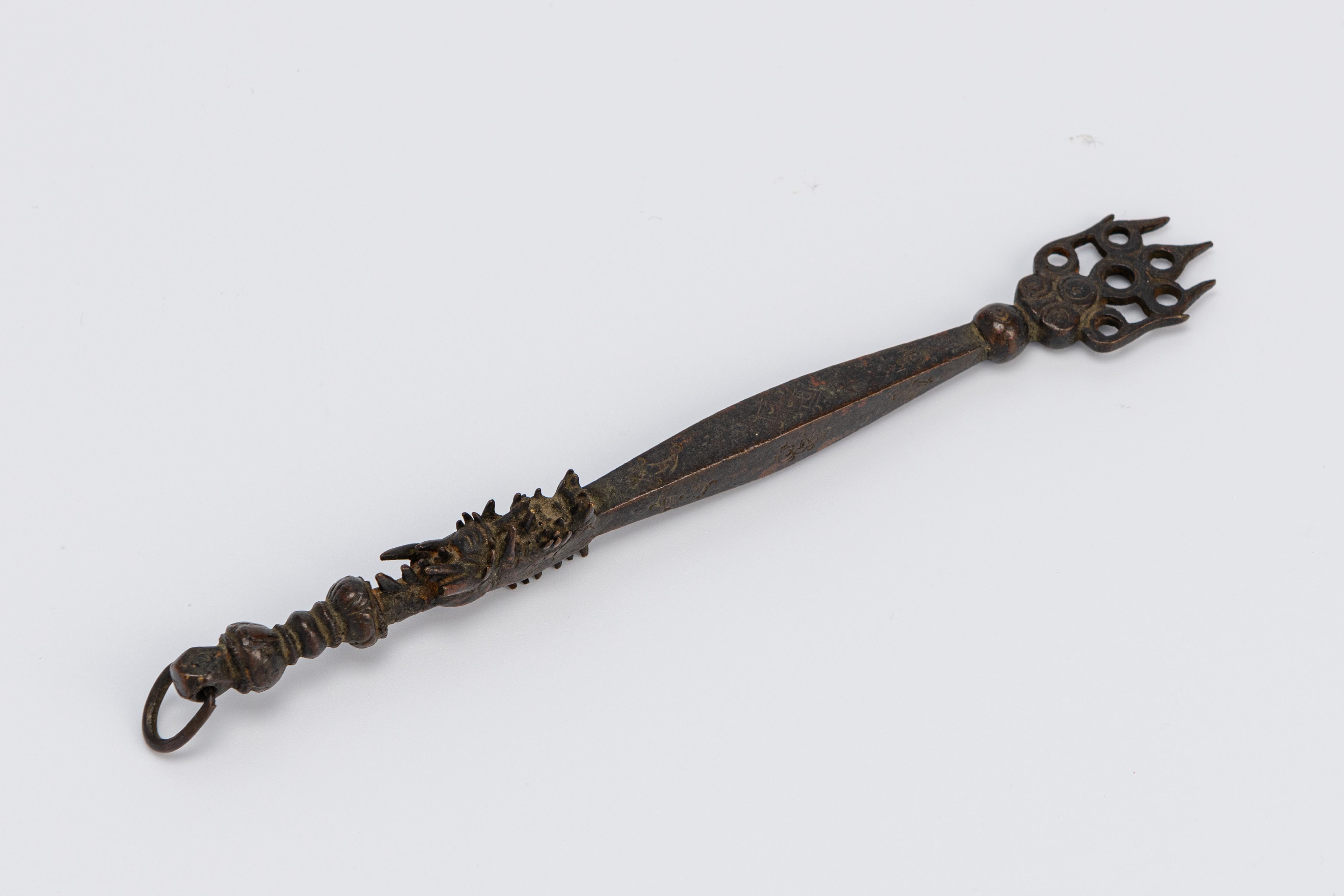 Ritual Implement in the Form of a Finial with Flaming Jewel and Makara Head Finial
