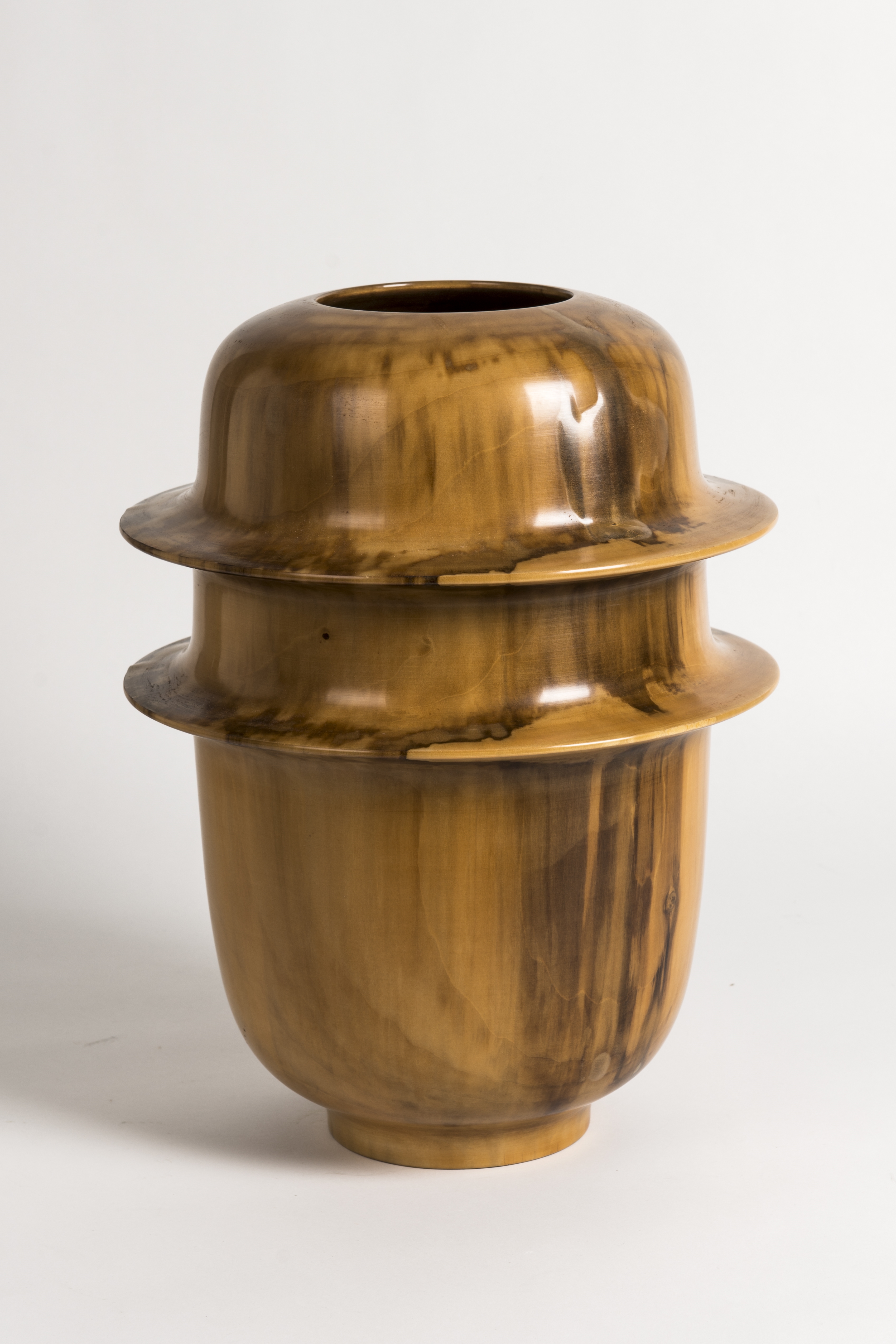 Light-wood turned bowl, oval shape with two projecting ridges around center