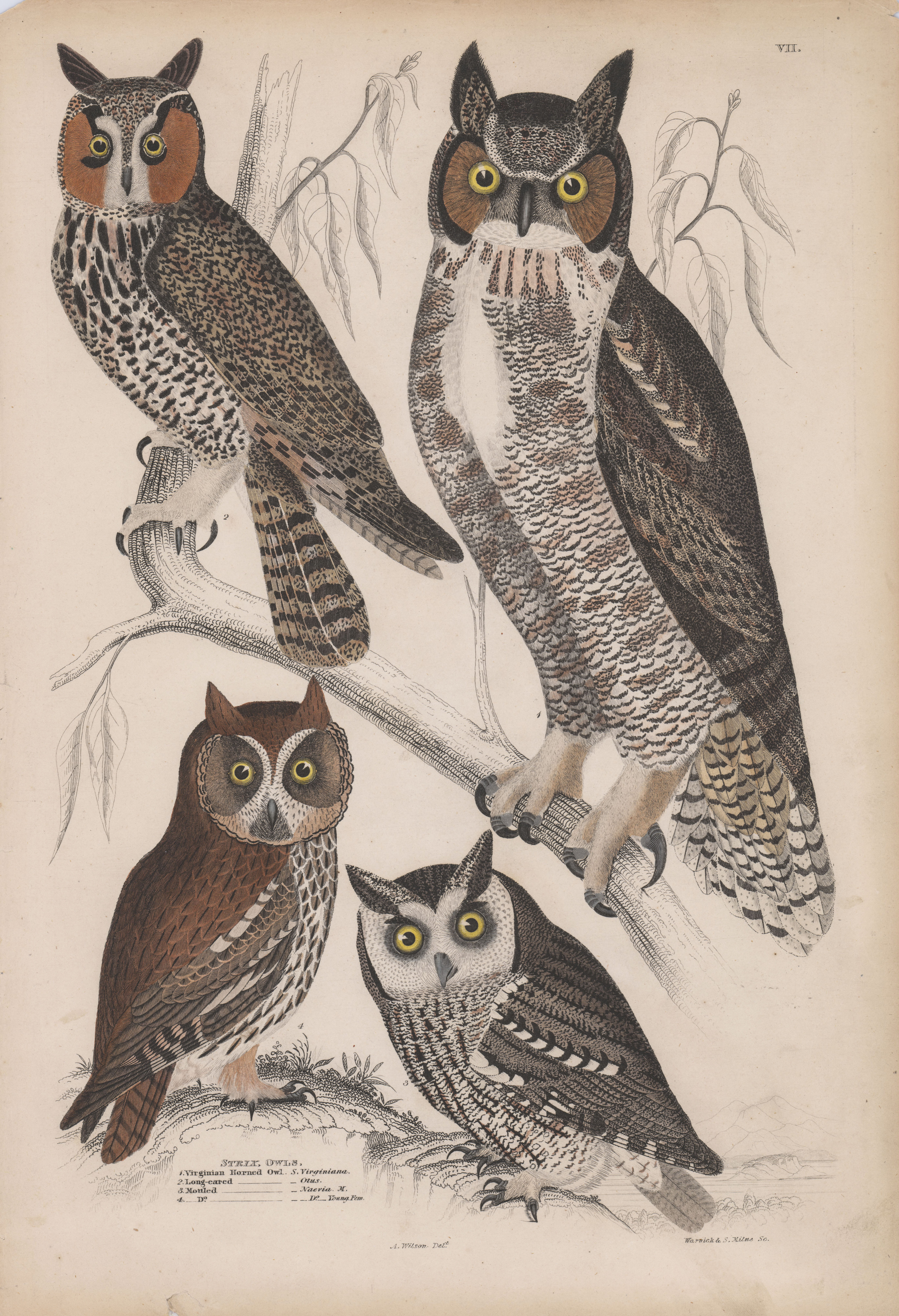 Strix Owls: Virginia Horned Owl, Long-eared Owl, Mottled Owl, (Undetermined)