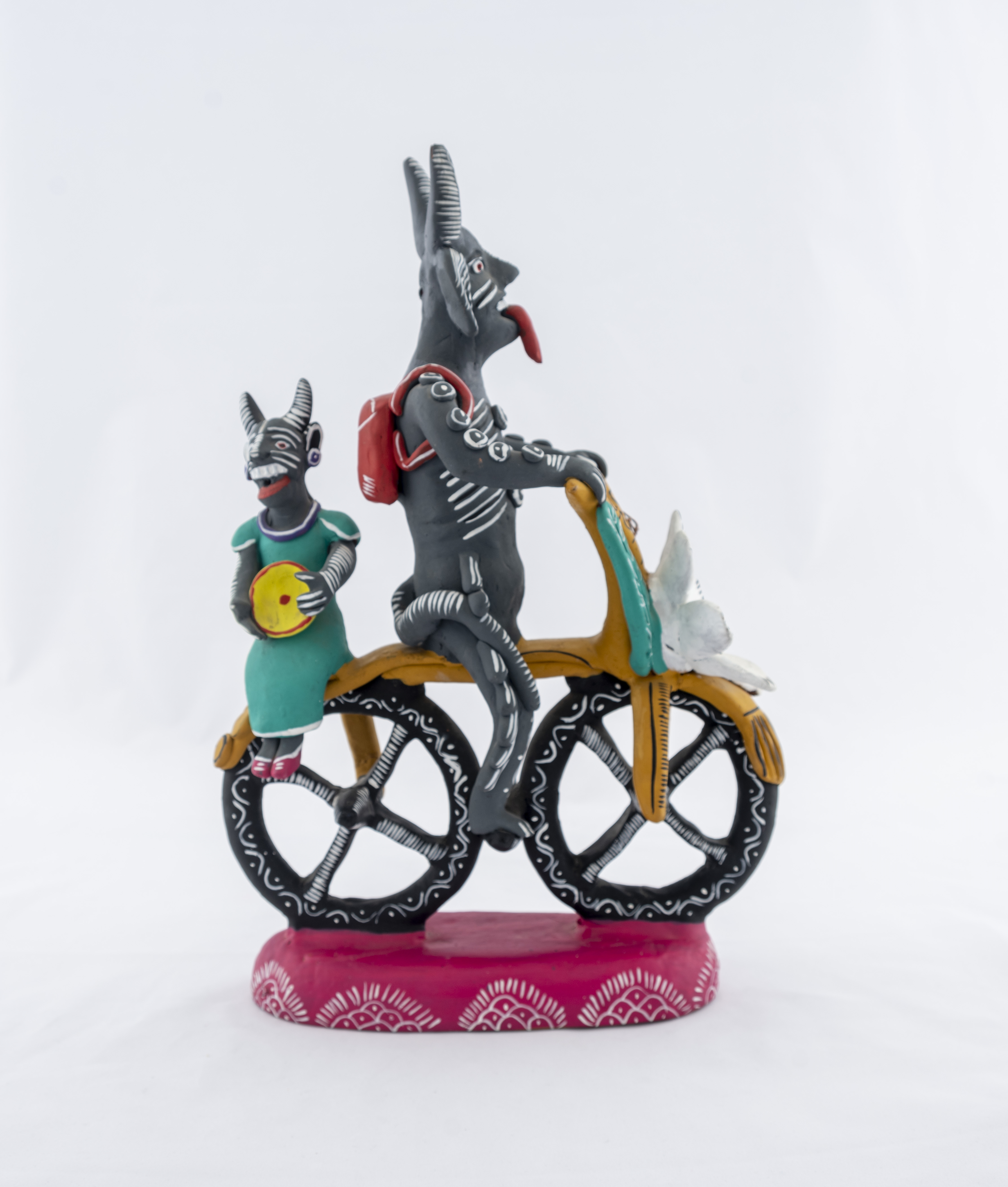 Two Gray Devils Riding a Bicycle