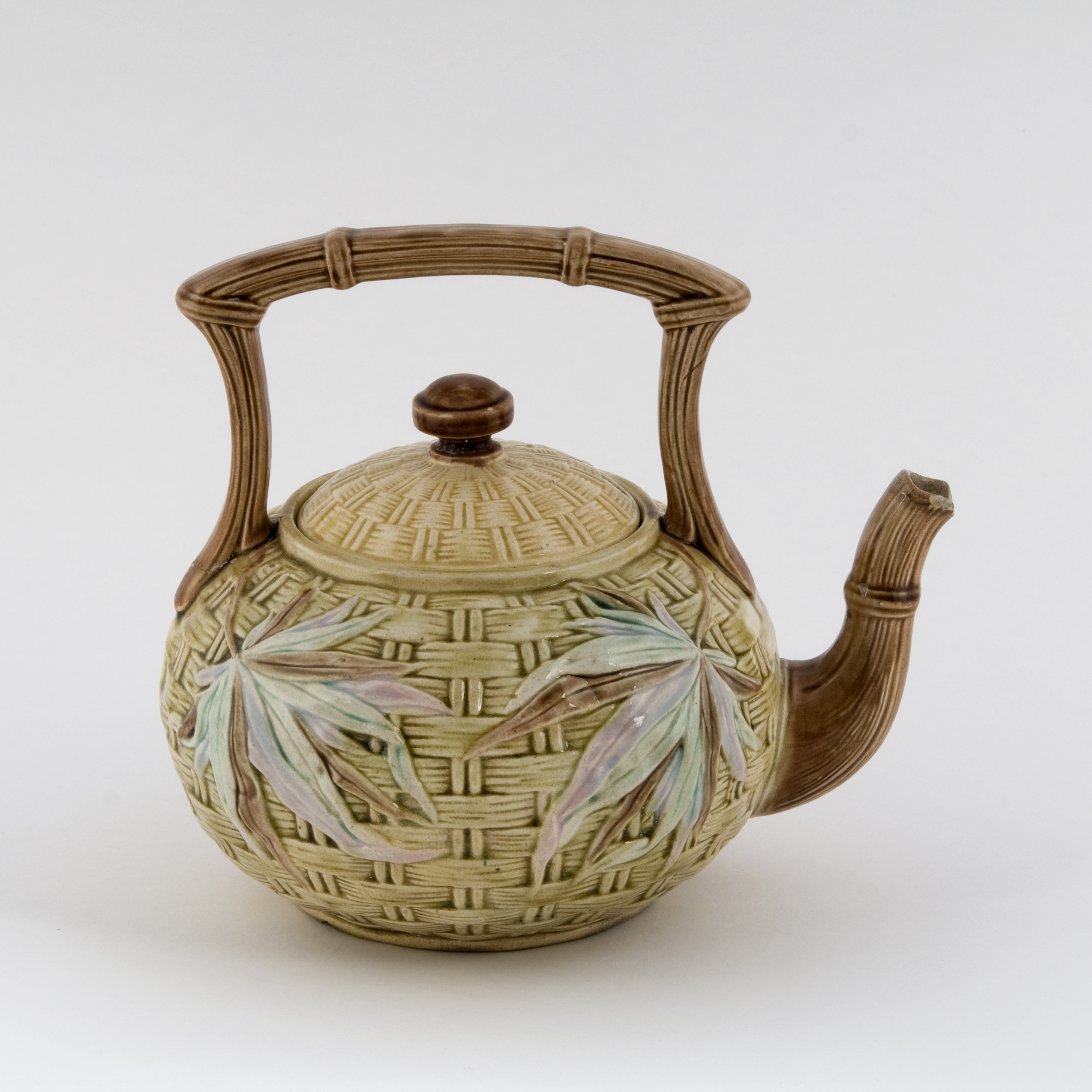 Untitled (Majolica Basket and Palm Teapot)